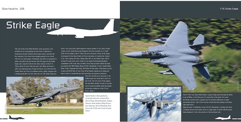 McDonnell F-15E Strike Eagle DH-026 has 196 pages and is on the F-15E Strike Eagle. In this book we combine spectacular action photos with close-ups of every detail of the aircraft. The forward fuselage, air intakes, top of the fuselage, landing gear, a 20 page cockpit chapter, arrestor hook, wings, engine exhausts, nothing is overlooked. Next to the F-15E, we also have a closer look at the export versions of the Strike Eagle, such as the Korean F-15K, Israeli F-15I, Singapore F-15SG, and even the Qatari F-15QA. In this book, some very specific weapons lay-outs are included as well as the F-15E without the CFT's. This really is a complete look at one of the USAF's most formidable fighter jets, with more than 450 photographs.