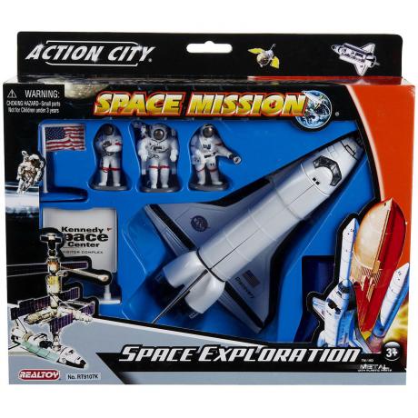 Kids can learn about the “last frontier” with the Space Shuttle With 3 Astronauts 7-piece set from Daron. Includes a large, authentic NASA space shuttle, a stand, three astronauts, and a Kennedy Space Center sign. For ages 3 and up.